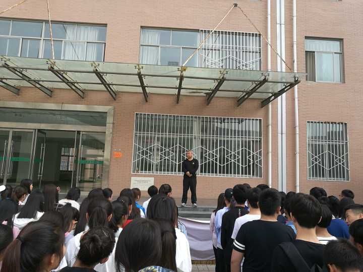 本次防震安全疏散演练由土木工程学院直属党支部书记南喜涛书记总策划,李宝林科长总指挥,5月13日早上9点演练正式开始。首先,由本次参与演练的班级的班主任向南书记汇报参与演练的实际人数。接着由李宝林科长结合他在部队中参与的一些救灾经历给学生阐述了自然灾害的威力及危害,为同学们普及了在地震等大型自然灾害到来之时的一些逃生常识。然后各班进入指定教室正式开始演练。