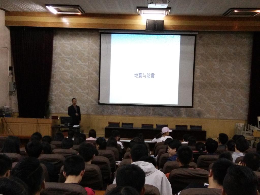 5月12日是5.12汶川地震周年纪念日,也被国家定为“全国防灾减灾日”,为了进一步做好我院防震减灾安全宣传教育,唤起全院学生对防灾减灾工作的高度关注,增强全院师生防震减灾的安全意识,普及推广防震减灾和应急逃生知识,确保灾难来临时把损失降到最低程度。5月14日,土木工程学院分团委邀请直属党支部书记南喜涛在一号报告厅为大一全体学生义务做了“地震与防震减灾”的专题讲座。