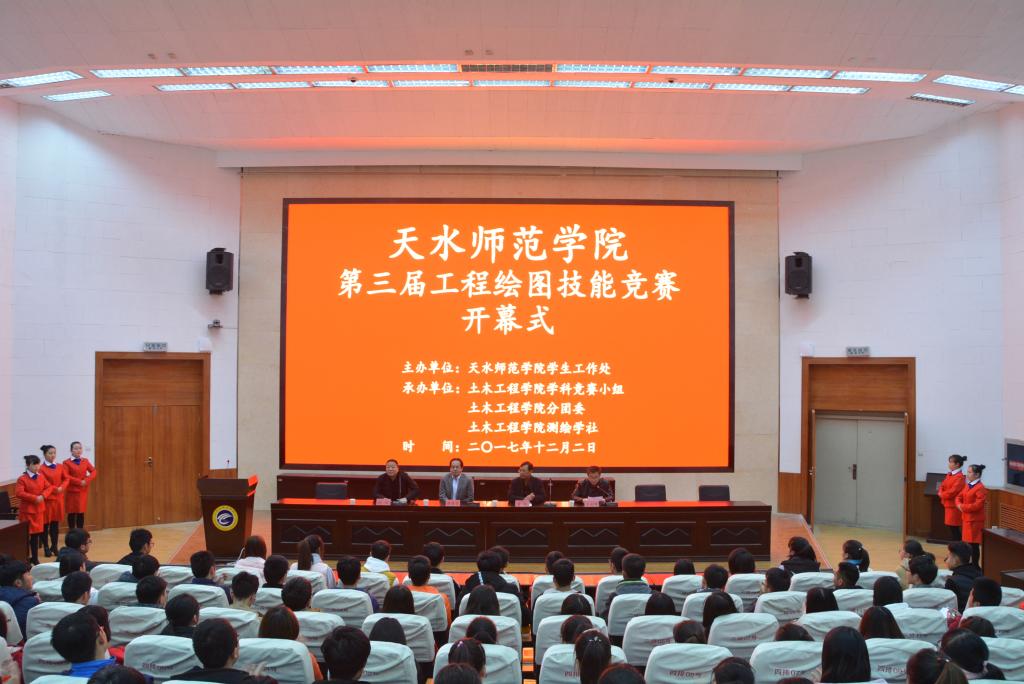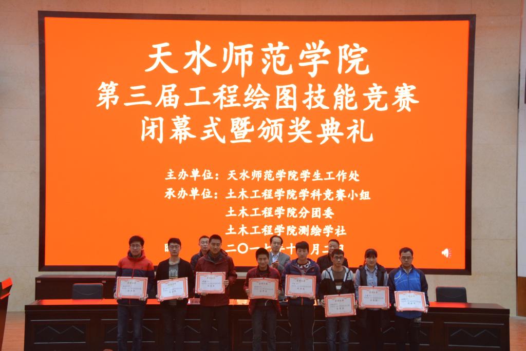 2017年12月2日,天水师范学院第三届工程绘图技能竞赛圆满闭幕。在近一个月的积极宣传和动员后,有110名学生报名参加了本次大赛,经过四个小时的激烈比赛,最后产生一等奖6名、二等奖12名、三等奖18名。