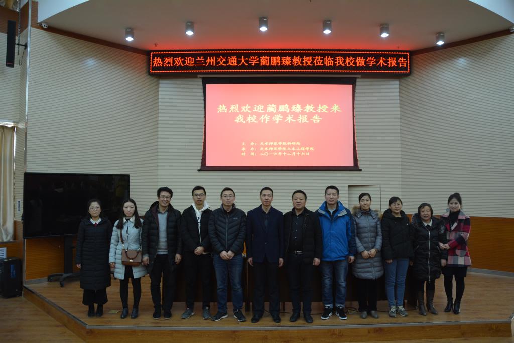 2017年12月17日,应天水师范学院邀请,兰州交通大学蔺鹏臻教授来我校作科研指导和学术报告。