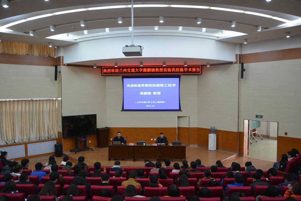 下午两点半,在学校三号报告厅,蔺鹏臻教授为学院师生作了关于“高速铁路桥梁的快速施工技术”的学术报告,土木工程学院院长杨帆、副院长吕向明、学院师生300余人聆听了此次报告会。