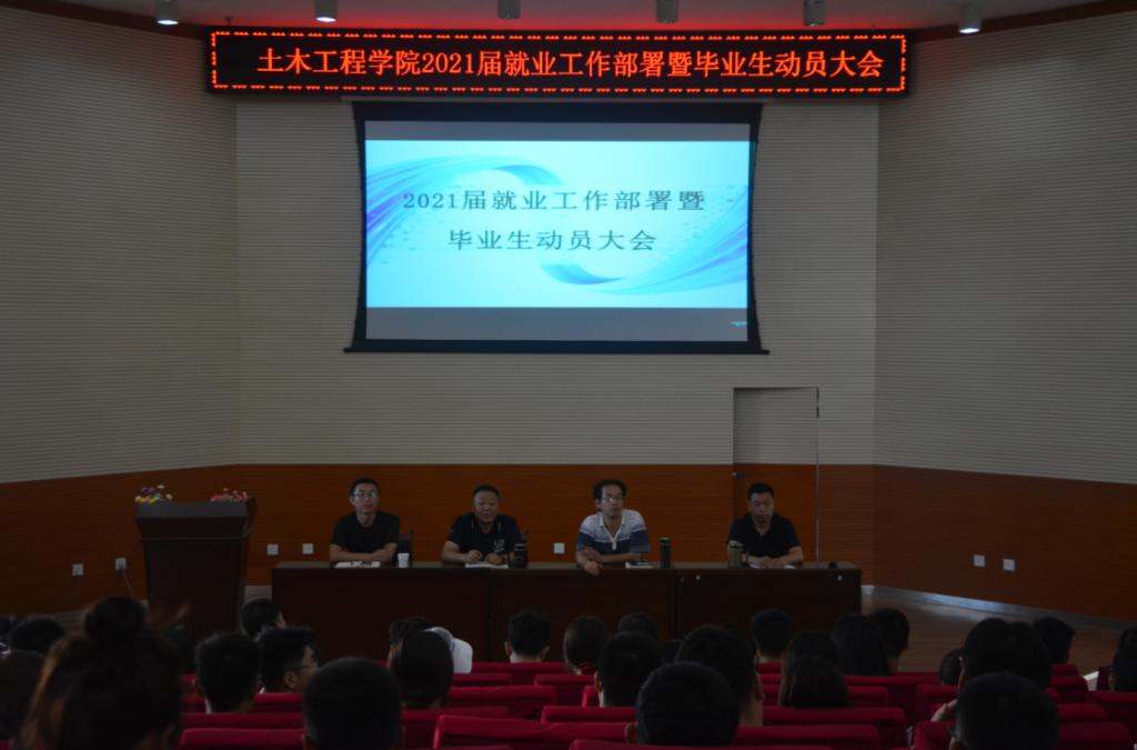 为增强我院毕业生就业意识和行动能力,推进我院学生就业工作,本单位特于2020年8月27日在我校三号报告厅举办2021届毕业生就业动员大会。土木工程学院直属党支部书记张建宏,院长杨帆,副书记(副院长)张自福,副院长吕向明,毕业班班主任、辅导员以及2021届全体毕业生共200余人参加动员大会。大会由土木工程学院直属党支部书记张建宏主持。