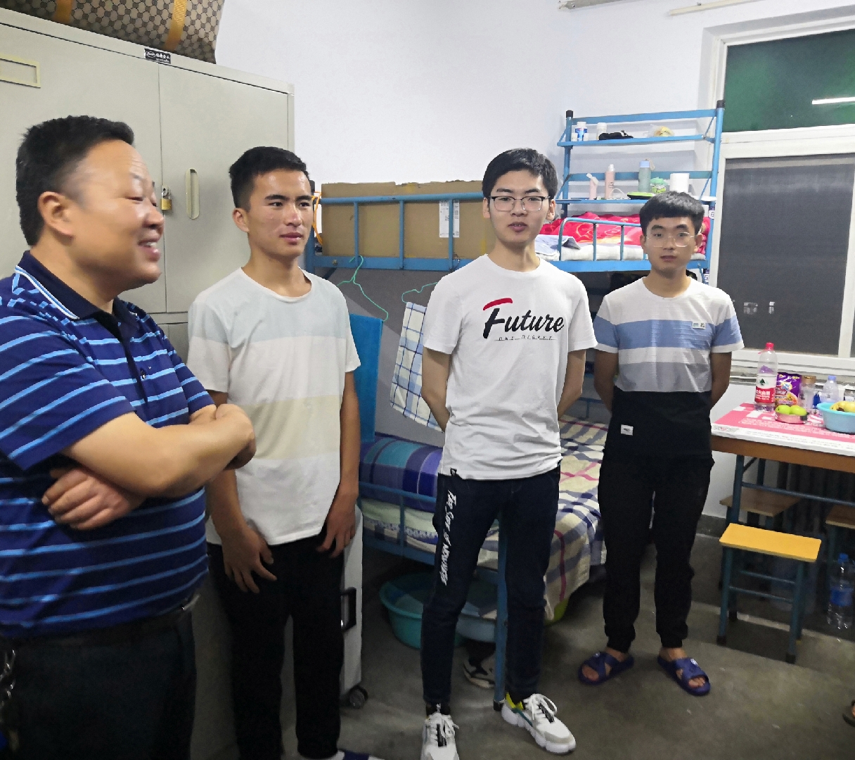 走访过程中,张建宏书记亲切地同新生交谈,亲切询问大家来自哪里、入学报到是否顺利、是否适应学校的环境并仔细查看宿舍的各项设施是否完备。杨院长表示学院会尽一切力量为同学们的学习和生活保驾护航,并提醒大家要提高自我保护意识和警觉意识,不要轻易相信来宿舍推销商品的人员,谨防上当受骗。同时要注意宿舍的安全问题,出门关好门窗,妥善保管自己的贵重物品。吕院长特别嘱咐道同学们要学会做人、学会学习、学会生活,要相互帮助,相互理解。希望他们能尽快适应大学生活,更好地进入角色。班主任和辅导员叮嘱大家无论是在学习还是在生活中遇到困难,第一时间与老师们联系。希望同学们尽快完成角色转变,适应大学生活,并对未来做出合理的规划。