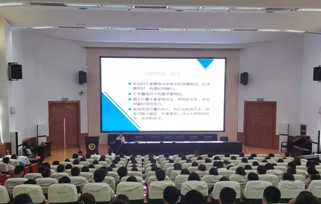 最后,辅导员孙艳就大学生在校期间的安全问题为同学们进行了强调。她分别从人身安全、财产安全、消防安全、生活安全、交通安全等几个方面,结合具体案例为同学们作了详细说明。在讲解中她着重提出“校园贷”对大学生的危害,通过具体案例告诫同学们应远离校园贷,维护自身权益。