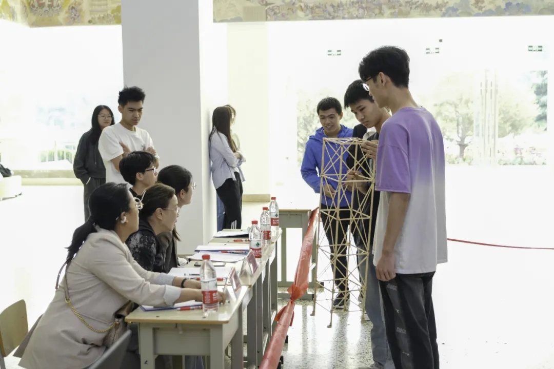 比赛第一阶段为评委对各队模型结构和质量外观进行打分,在保障结构合理的前提下,各队充分发挥想象力,参赛模型形式多样,评委老师们依次听取参赛选手讲解模型特点,根据模型的科学性、美观性和可行性等方面进行综合评分。