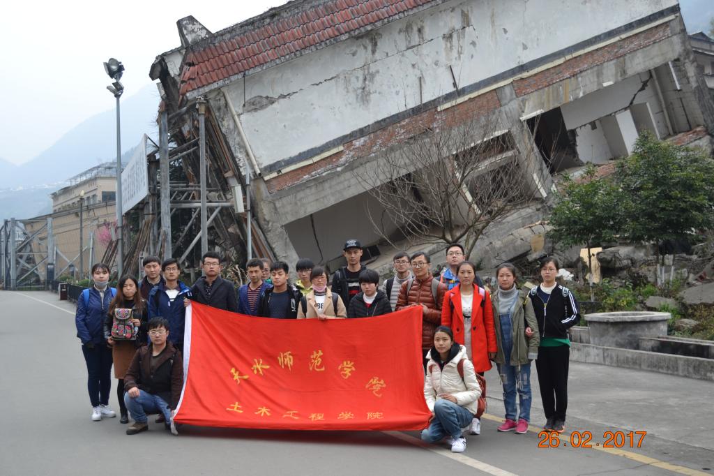 成都实习组由苏永老师和魏国强老师带队,主要参观了北川老县城地震遗址、北川新县城、汶川县映秀镇地震遗址、成都市区的古建筑以及现代建筑。通过实地观察各类建筑结构的震害,同学们更加坚定了必须要学好专业知识才能建造出更好抗震性能的房屋,以及作为一名土木专业人的责任感。