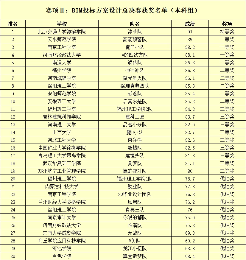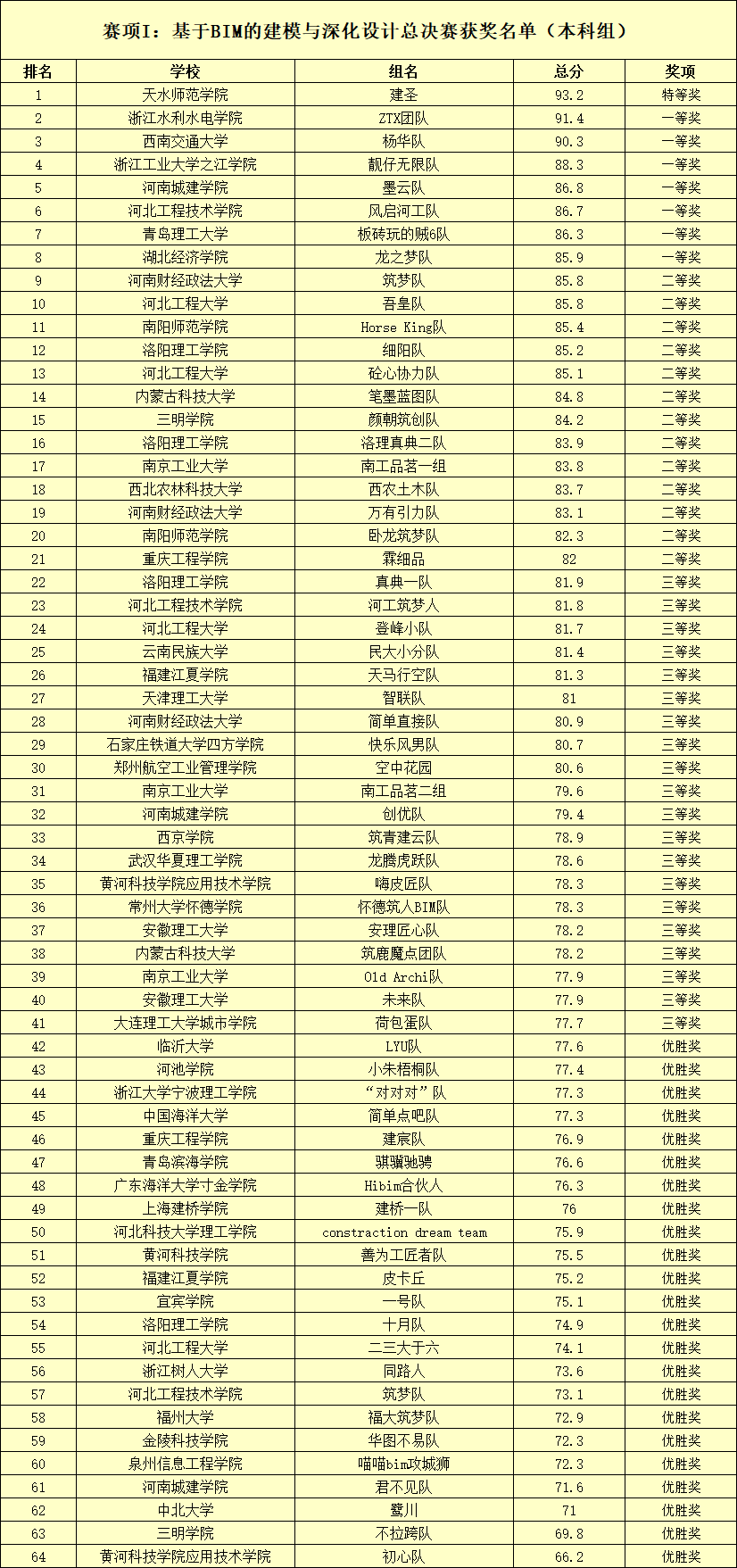 我院参与报名的赛项一BIM建模与深化设计,“建圣”队以108分第一名的成绩晋级全国赛,并在答辩现场以优异的表现摘得赛项一全国第一名,获得特等奖。赛项二BIM投标方案设计,“高能预警队”在答辩现场表现突出,成功逆袭,以全国第二名的成绩荣获一等奖。