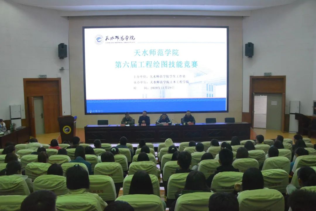 为推进我校高水平应用型大学目标,提高学生专业技能和职业素养,2020年11月29日,由学生工作处主办,土木工程学院承办的天水师范学院第六届工程绘图技能竞赛在四号实验楼隆重举行。此次工程绘图技能竞赛开幕式于二号报告厅举行,出席开幕式的领导有天水师范学院工作处副处长巩军全、土木工程学院院长杨帆、副院长张自福、副院长吕向明、以及竞赛裁判组教师和众多参赛选手。天水师范学院学生处副处长巩军全致开幕词。