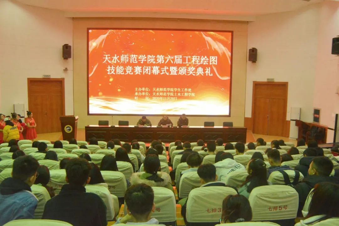 经过一天紧张的比赛,最终产生一等奖14个,二等奖28个,三等奖41个,优秀奖27个。下午5点30分,天水师范学院第六届工程绘图技能竞赛闭幕式暨颁奖典礼在二号报告举行,由副处长巩军全、副院长张自福、副院长吕向明为获奖选手颁发了荣誉证书和奖品。
