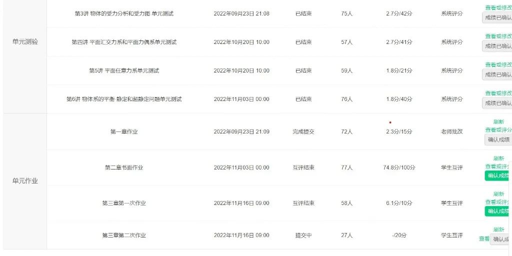 3.课后利用中国大学慕课平台布置课后任务、提交成果(如单元测验、作业等)。