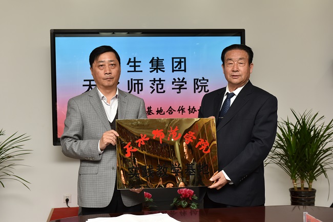 副校长安涛和张一诺共同为实践基地揭牌,杨帆和张一诺代表双方签订了校企战略合作协议书。会上,副校长安涛对永生集团公司接受成为学院的实践教学基地表示赞赏和感谢;并且指出,随着经济发展方式的转变,产业转型的升级,要求我们这样的地方大学向应用技术大学转变,努力培养掌握新技术、具备高技能的新型专业人才;要完成这样艰巨的任务,迫切需要行业、企业的积极参与;近年来,学院及系部与多家企业开展产学研校企合作,永生集团公司是最有成效的合作伙伴之一,双方在培养方案的制定、教学内容的改革、毕业设计指导、学生实习实训及校园文化建设等方面都取得了良好的成绩;相信通过此次揭牌,双方的合作一定会取得更加丰硕成果。