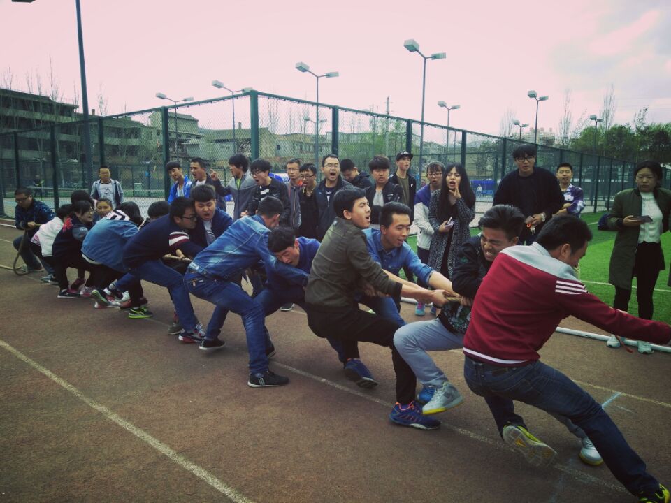 4月的天水,天气仍有丝丝凉意,各班响彻操场的加油声却使赛场氛围十分热烈。只见双方选手们交错而站,脚顶着脚,摆好姿势,随着比赛开始的哨声响起,选手们纷纷拿出不服输的精神,身体后仰,全身鼓足了劲儿,腮帮鼓起,面红耳赤,即使手被磨得生疼,但是仍咬紧了牙,用力抓住那长长的大绳使劲往后拉。拉拉队在旁边为自己的班级加油呐喊着,每个人都恨不得抓起绳子跟选手一起努力,整个场面既激烈又温馨。