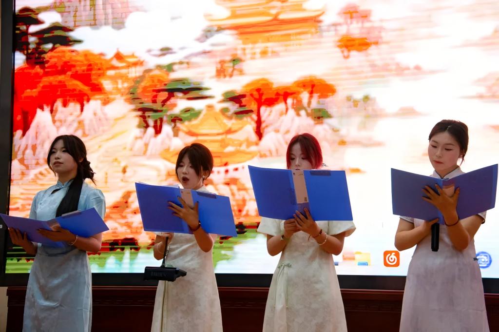 随后,读书月系列活动之中华经典诵读大赛正式拉开帷幕。各参赛队伍轮番登场,《将进酒》中李白的豪迈洒脱在选手们的激情演绎下跃然耳边,尽显盛唐气象;《青春中国》饱含家国情怀,选手们用激昂的语调抒发着对祖国的热爱与自豪,引发现场师生强烈共鸣;《诗经・蒹葭》的朦胧诗意经由选手细腻诠释,将那份古老而真挚的情感展现得淋漓尽致。一篇篇经典作品在选手们的精彩演绎下,仿佛穿越时空,焕发出新的生机与活力。