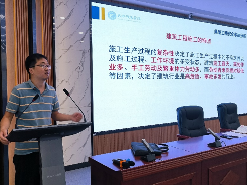 会议开始,院长吕向明对实习工作提出了总体要求,强调:希望同学们能够珍惜这次实习的机会,虚心向技术人员请教,到施工现场去印证大学所学的理论知识,加深对课堂理论教学内容的认识和了解,提升解决实际工程问题的能力;遵守实习纪律,积极向上,严谨踏实;认真完成实习日志、报告,抓住可能就业的机会;明确指导教师职责,保障同学们顺利完成实习任务。副院长魏国强详细介绍了本次实习的目的、内容、要求、提交成果和实习相关的注意事项,详细列举了同学们在实习过程中可能会遇到的各种常见问题和突发事件,并认真的为同学们讲解了如何去应对、解决各种实习问题。实习安全是重中之重,随后副院长魏国强针对施工现场常见的安全隐患,进行了系统的安全培训,以加强对隐患的认识,提升防范意识,保障实习安全。