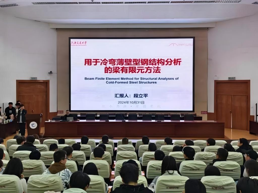 应土木工程学院邀请,10月31日,上海交通大学船舶海洋与建筑工程学院副研究员、博士生导师段立平来校作了《冷弯薄壁型钢分析的梁有限元算法》学术报告。土木工程学院200余名师生聆听了报告。