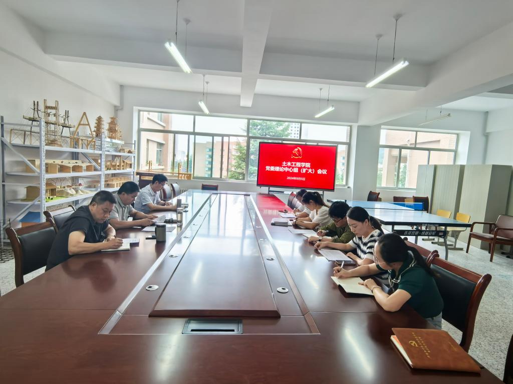 2024年9月5日,土木工程学院党委书记崔德旺主持召开院党委理论学习中心组(扩大)会议。学院党委理论中心组成员、学院党委支委成员、各党支部书记参加会议。